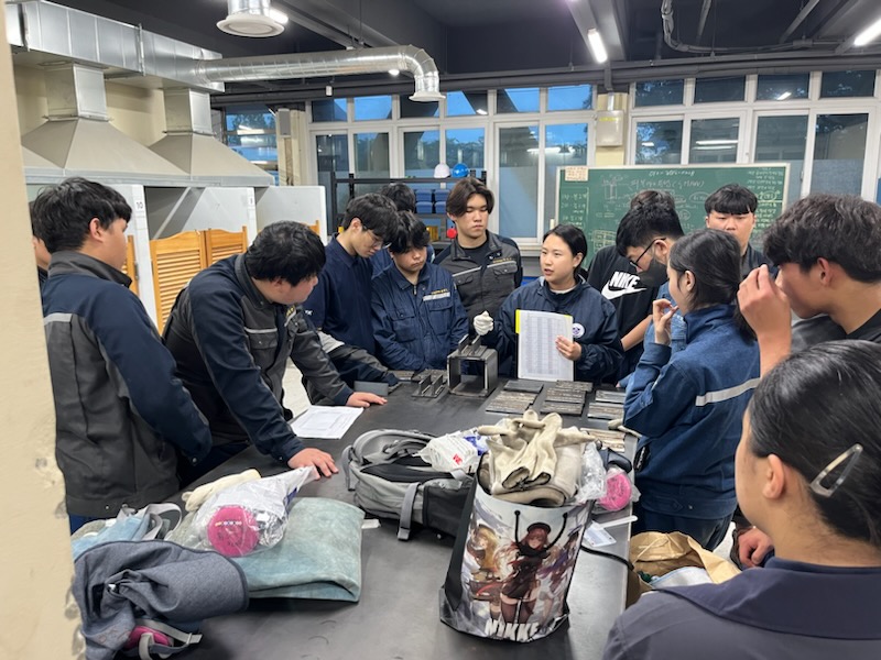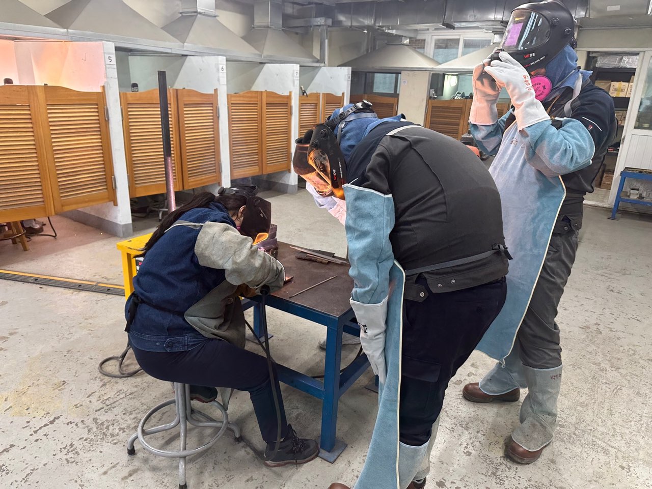 1,2,3학년 농산업기계과 학생들이 피복아크용접기능사를 취득하기 위해 연습하는 모습입니다.