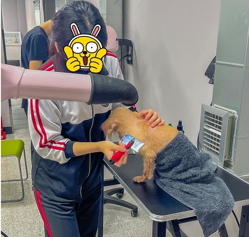 - 학생들이 실제 애견을 관리하는 방법을 배우고 실 습하는 수업을 진행