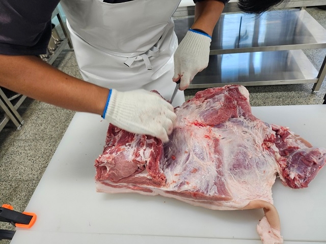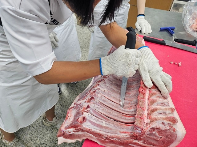 ※ 식육처리기능사준비반 ?식육처리기능사란? - 수행직무 식육처리에 관한 숙련기능을 가지고 식육의 분할, 골발, 정형작업과 관련된 업무를 신속, 정확, 안전하고 위생적으로 처리하는 직무수행 - 진로 및 전망 식육처리에 관련된 도축, 가공, 판매업체 및 육가공공장, 백화점이나 슈퍼마켓 등의 유통업체에 진출할 수 있으며 자영업을 하기도 함 국민소득이 증대됨에 따라 축산물 소비량도 점차 증가하고 있음 이에 따라 최근 응시자수와 합격자 수도 증가하는 추세
