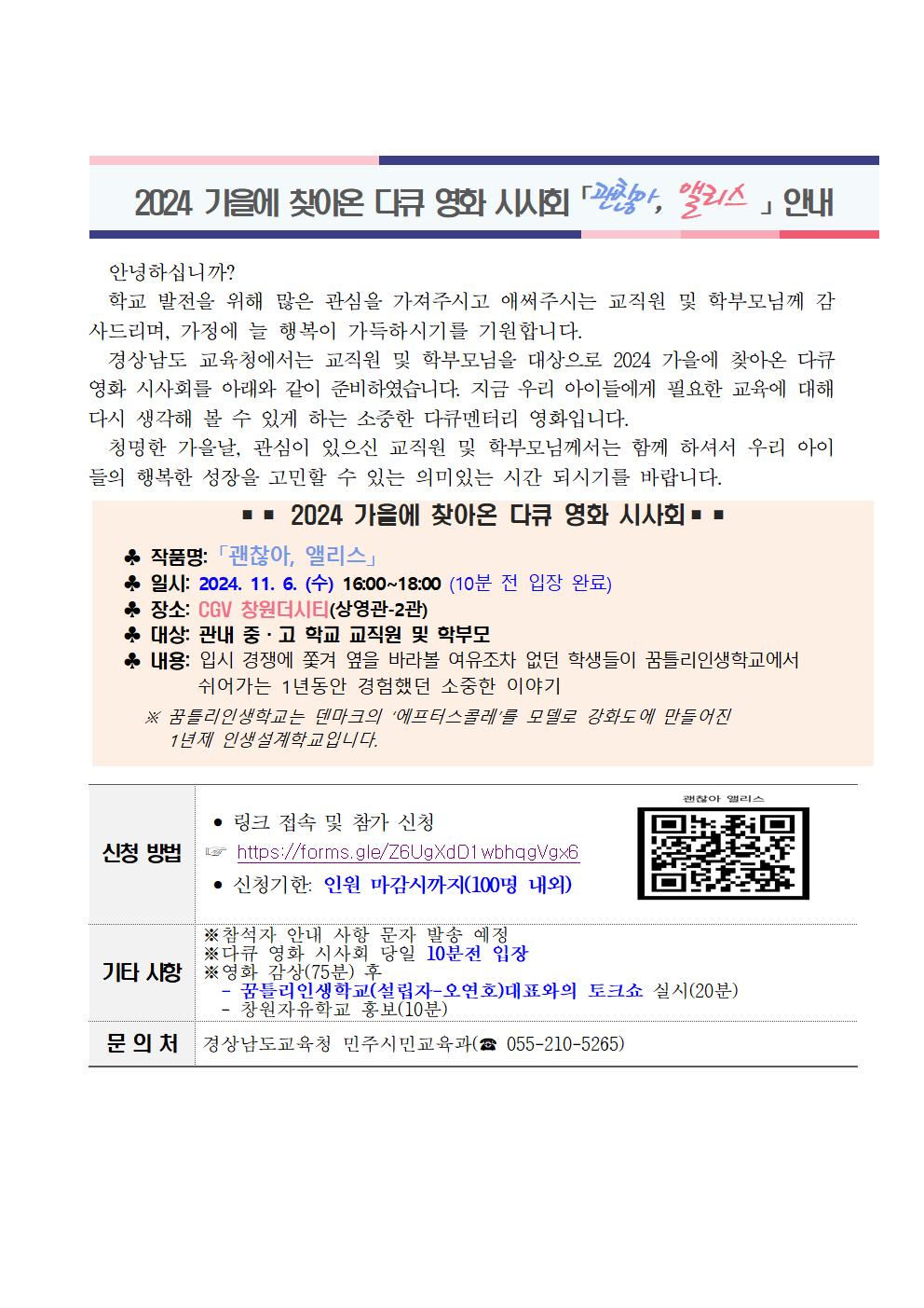2024 가을에 찾아온 다큐 영화 시사회 [괜찮아, 앨리스] 안내